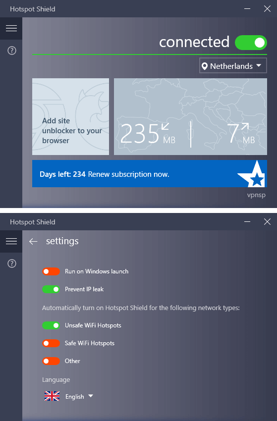 IPSec 和 SSTP 协议。它还可以支持一个账户在多个终端上运行。Mac OS X 用户受 Open加速器 保护,iOS(iPhone、iPad、iPod Touch)受 strongSwan 支持的 IPSec 保护。